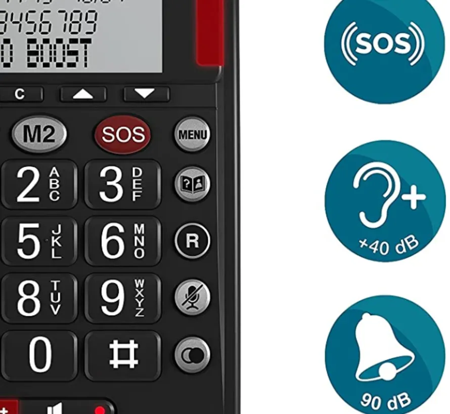 Dankzij de grote toetsen, eenvoudige bediening en krachtige geluidsversterking is de telefoon uitermate geschikt voor slechthorenden. Het hoornvolume is instelbaar tot 40 dB en de beltoon gaat tot 90 dB – luid genoeg om geen enkel gesprek te missen.