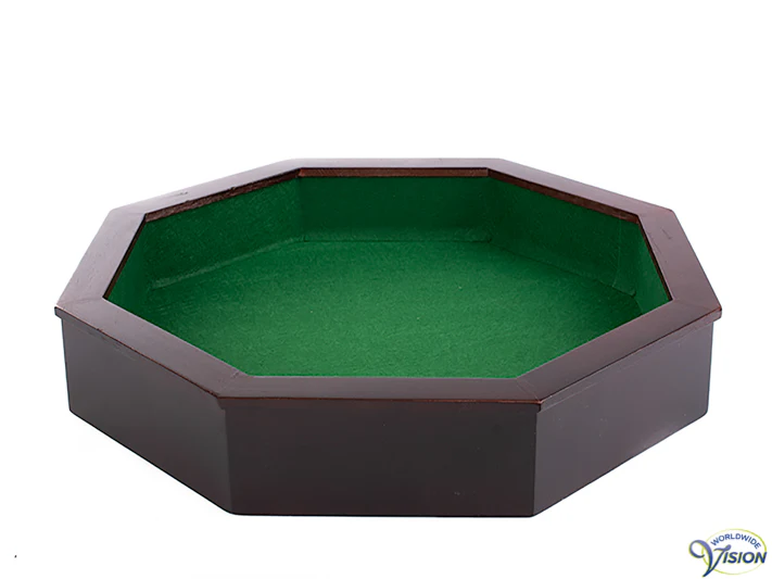 De dobbelsteen piste is een waardevolle toevoeging voor iedereen die moeite heeft met het volgen van dobbelstenen op tafel. Door de verhoogde rand blijven de stenen binnen bereik, en met grote dobbelstenen wordt het aflezen van de worp een stuk makkelijker.