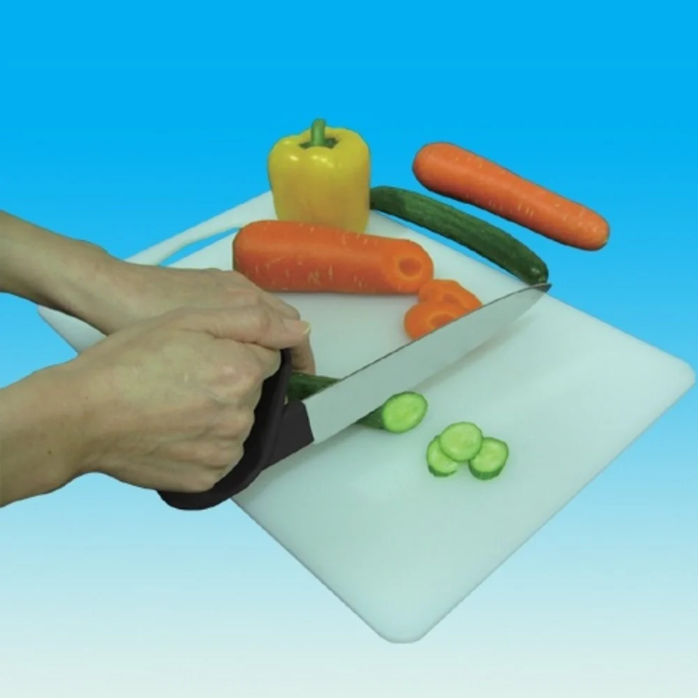 Heb je moeite met snijden door verminderde handkracht, reuma of artrose? Dit ergonomisch keukenmes bij verminderde handkracht is speciaal ontworpen om snijden weer comfortabel en veilig te maken.