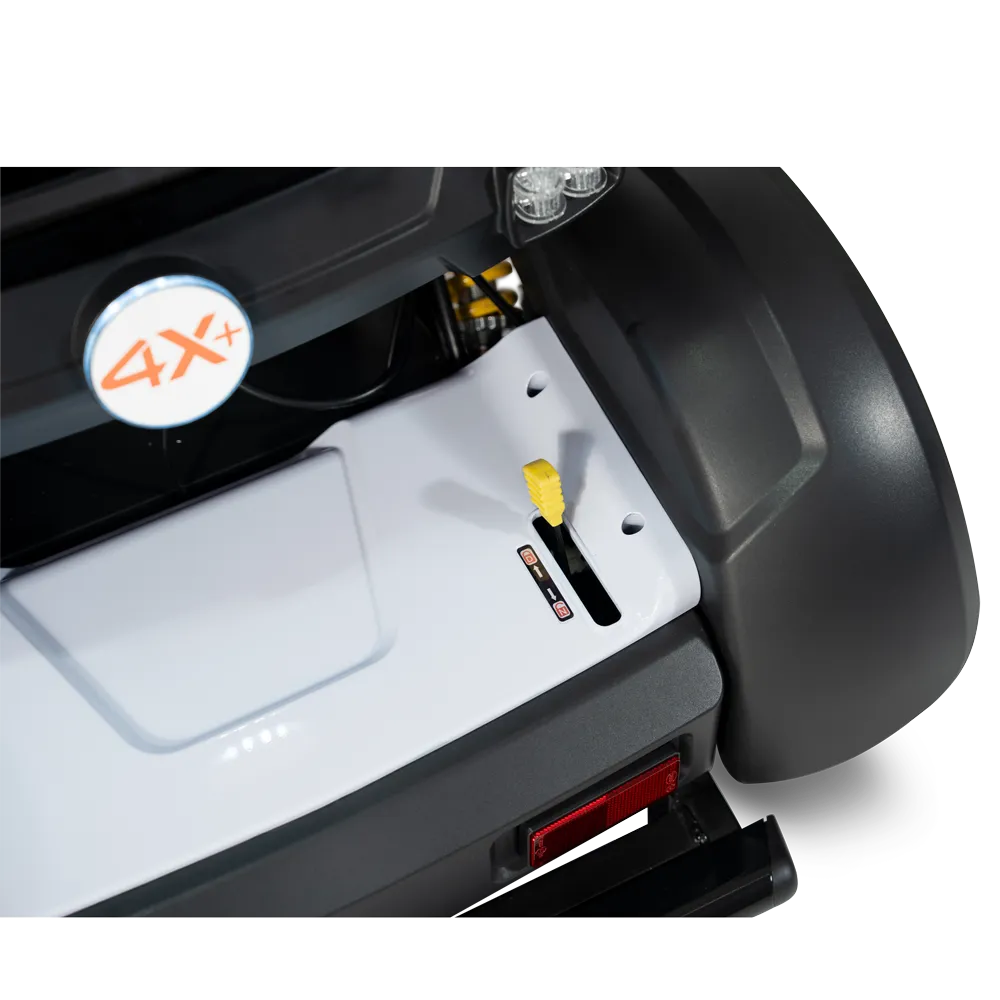 Omdat de accu in de bodemplaat is verwerkt, geniet je in de X-serie van extra veel beenruimte. De draaibare stoel zorgt ervoor dat je makkelijk kunt op- en afstappen, en onder de zitting zit een handig vakje om spullen in op te bergen.