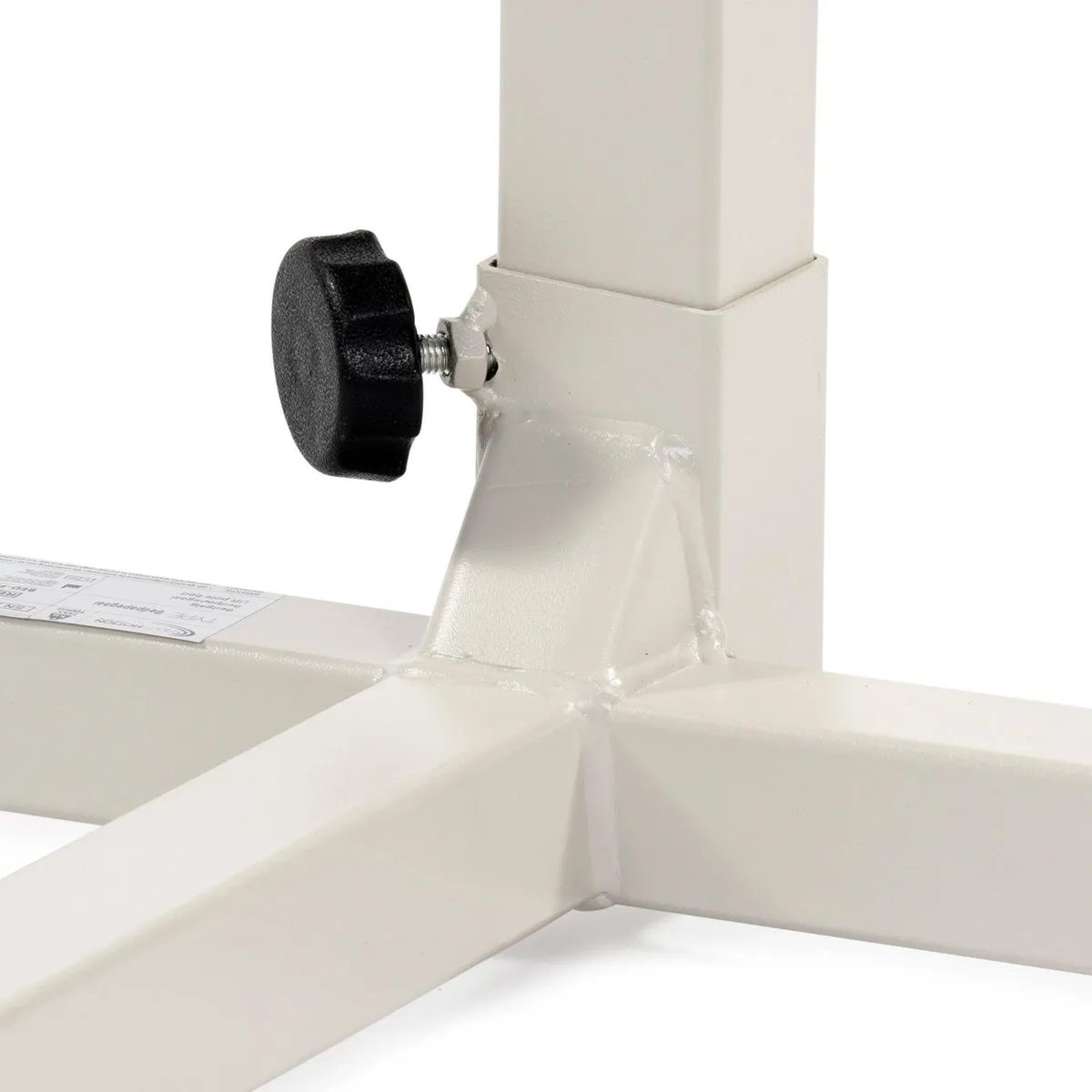 De bedheffer is voorzien van een robuuste voet, die stevig op de grond staat en achter het hoofdeinde van het bed wordt geschoven. Het is belangrijk dat de hoogte onder het hoofdeinde van het bed minimaal 5 cm en maximaal 6,5 cm is, zodat de voet van de bedheffer er goed onder past. Dit vrijstaande ontwerp maakt bevestiging aan het bed overbodig en biedt extra stabiliteit en veiligheid tijdens het gebruik.