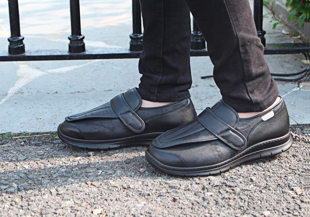 Verbandschoenen zijn speciaal ontworpen om de voeten te ondersteunen en beschermen bij medische problemen. Denk aan herstel na een operatie, wonden of voetklachten zoals hallux valgus, hamertenen of oedeem. De schoenen zijn extra breed, volledig open te leggen en eenvoudig te sluiten met klittenband. Dit zorgt voor: