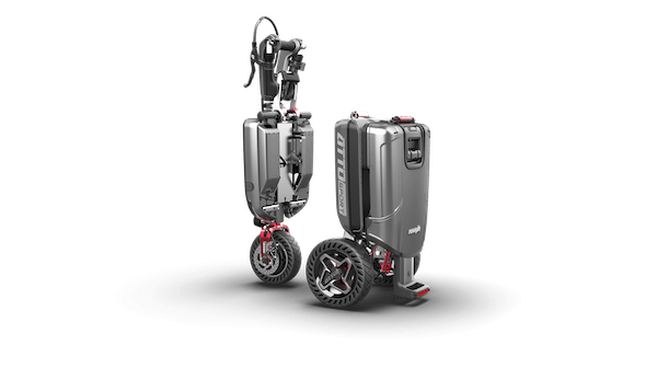 Ook de Atto scootmobiel is opvouwbaar tot een koffertje om klein te vervoeren . Wel is deze heel iets grote dan de Relync maar heeft deze de unieke eigenschap dat deze te splitsen is om het tilgewicht te reduceren naar 14 en 16 kg . De Atto is verkrijgbaar in twee uitvoeringen, de Atto en Attop sport . Beide uitvoeringen zijn makkelijk opvouwbaar en bieden veel beenruimte . Wel heeft de sport een maximale snelheid van 10 km/u , zachtere banden en een vergrendeling tegen diefstal met een afstandsbediening en een stoerder uiterlijk . Beide uitvoeringen zijn gekeurd en gecertificeerd voor vliegverkeer en mogen mee op vakantie. De lichtgewicht lithium accu is uitneembaar en geeft een bereik van circa 15 km. Ook deze accu is kort te laden en heeft een lange levensduur tussen de 5 en 7 jaar. De Atto opvouwbare scootmobiel is al verkrijgbaar vanaf € 3290,- en heeft een eenvoudig besturing met digitaal display.