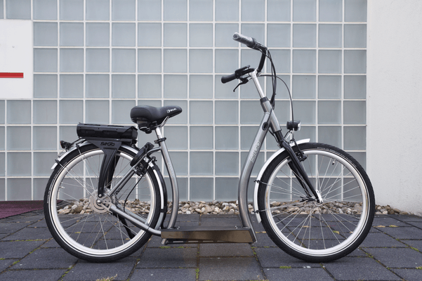 De lage instap zorgt ervoor dat u altijd makkelijk kunt op en af stappen. Het voordeel is dat u altijd gemakkelijk en vlug beide benen weer aan de grond kunt zetten wanneer u bijv. moet stoppen voor een kruispunt of stoplicht. De Sitgo heeft een gebogen stuur wat voor een rechte zithouding zorgt.