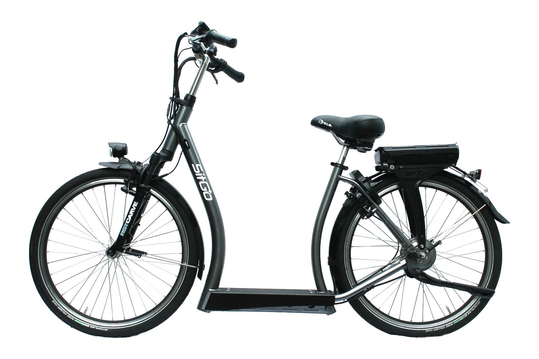 De Sitgo elektrische loopfiets heeft een gebogen stuur wat voor een rechte zithouding zorgt. Ook lijkt de Sitgo eigenlijk op een gewone fiets en ziet er modern uit. Dit maakt het ook prettig en doet hiermee eigenlijk als een “gewone” fiets aan. De Sitgo is in twee trendy kleuren verkrijgbaar: antraciet of rood.
