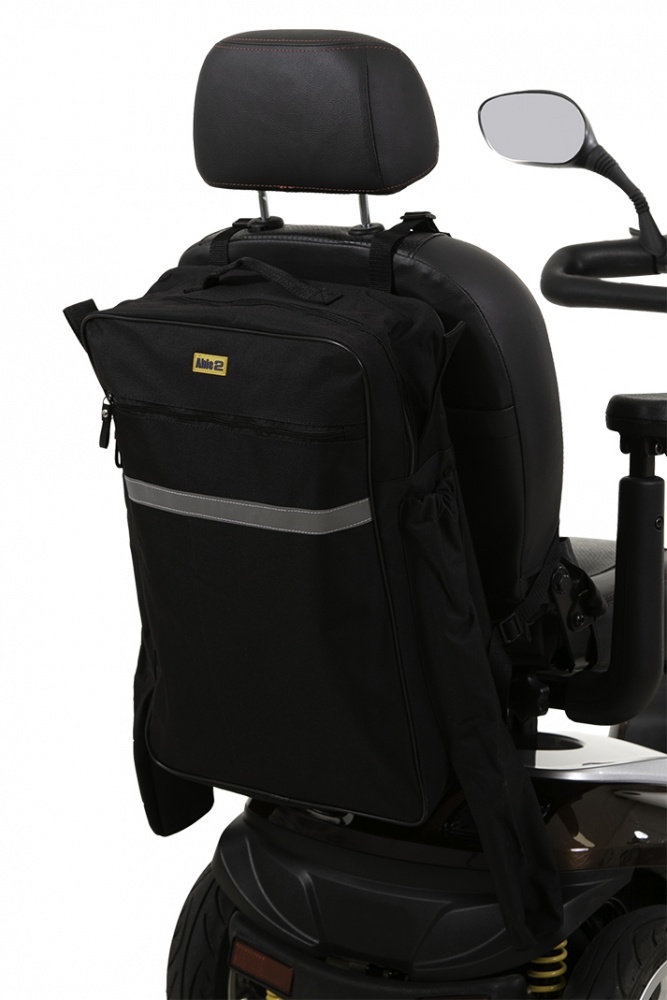 Bij bevestiging op een scootmobiel wordt de tas over de rugleuning gemaakt en hangt de tas aan de achterzijde van de rugleuning. Bij bevestiging aan een rolstoel komt deze met twee lussen over de duwbeugels ook aan de achterzijde van de rolstoel te hangen.