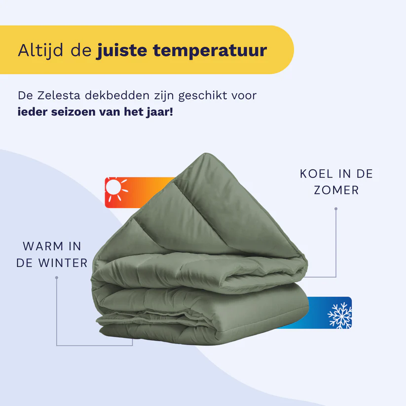 Ervaar het gemak en comfort van de Zelesta RoyalBed Pastel Green ,All Season een innovatief hoesloos dekbed dat uw slaaproutine voorgoed verandert.